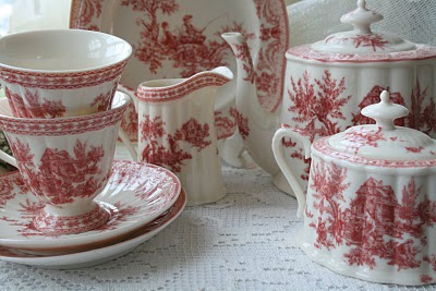 estes saõ vermelho e branco "tranferware" (toile jouy)